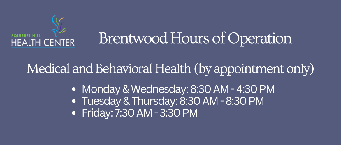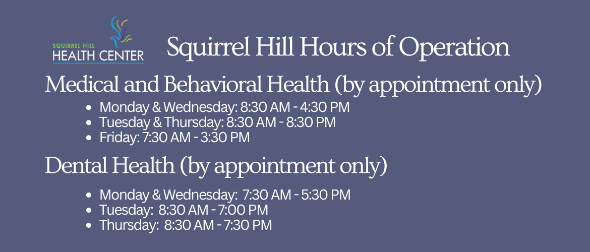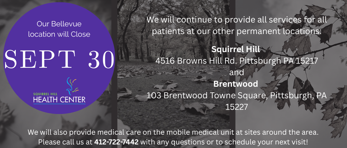 Call us at 412-422-7442 or email us at info@squirrelhillhealthcenter.org